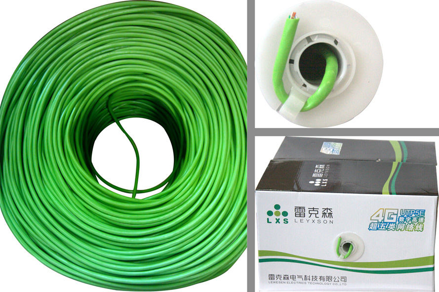 雷克森超五类网络线STP,带屏蔽,由4对双绞线、外面一层金属材料包裹、绝缘胶皮组成,绿色。导体直径0.5mm的双绞线,弯曲灵活、自然方便组网,低烟、低毒、低腐蚀性,安全环保。